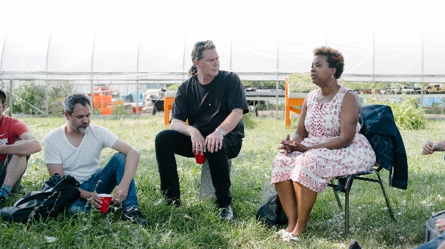 Image 2: Oakland Avenue Urban Farm Director, Jerry Hebron, welcomes the M-NEX team. (Image © Shun Nakayama).