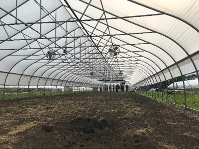 Image 7: M-NEX team visiting hoop houses at RecoveryPark Farms.(Image © RVTR/ U-M)